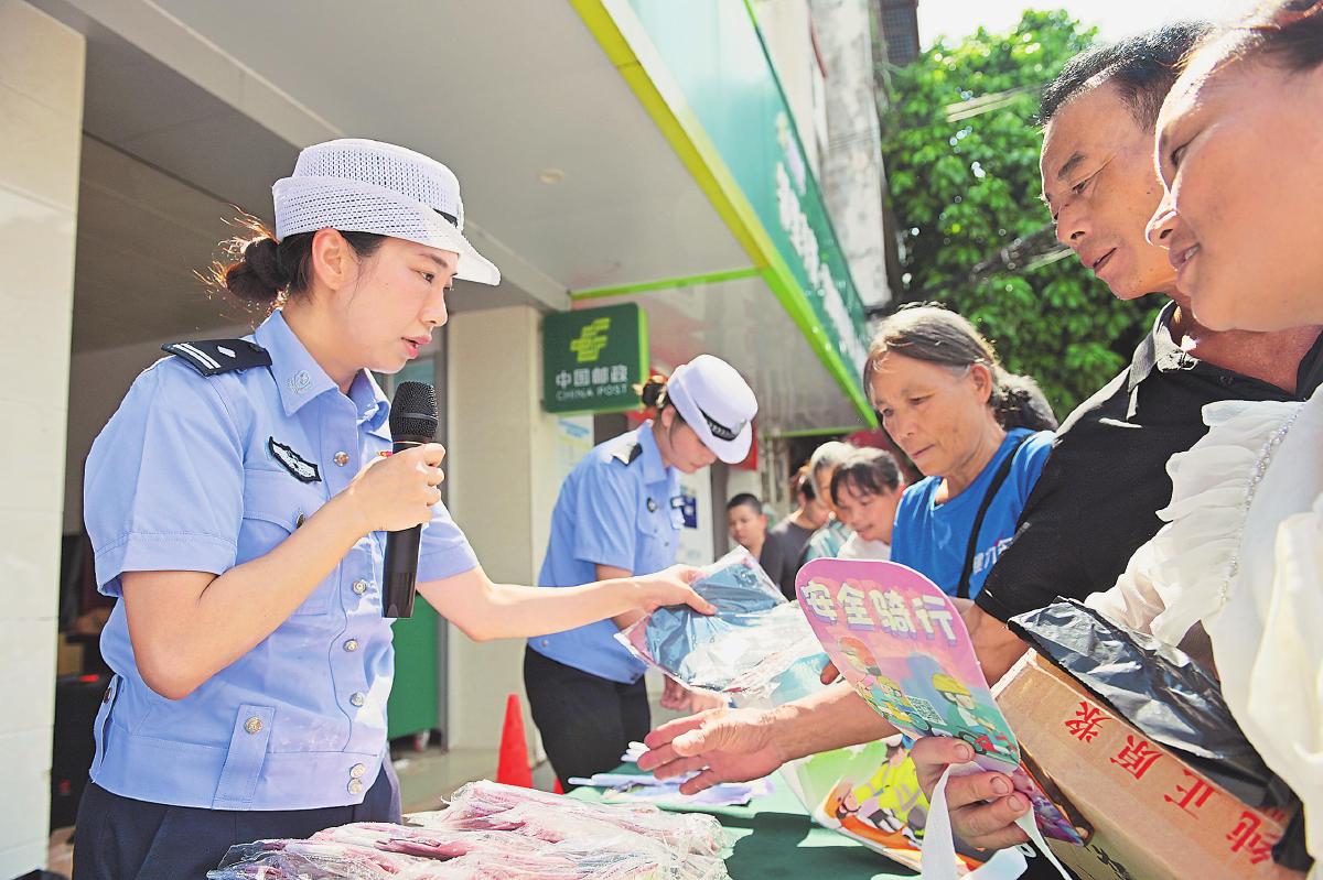 “橫過道路先觀察,一停二看三通過?!鼻宕囗懥恋慕煌ò踩珡V播在廣西壯族自治區(qū)南寧市青秀區(qū)南陽鎮(zhèn)回蕩。7月29日,南寧市郵政分公司與公安局交警支隊(duì)聯(lián)合開展“警郵聯(lián)動 ‘大喇叭’進(jìn)農(nóng)村”交通安全主題宣傳活動。