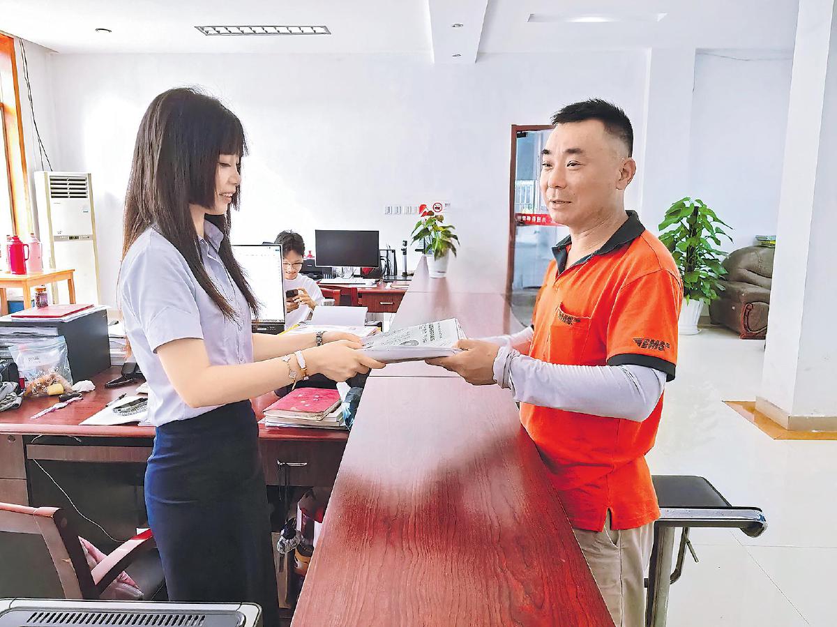 朱紅強(qiáng)(右)為客戶投遞報(bào)刊。