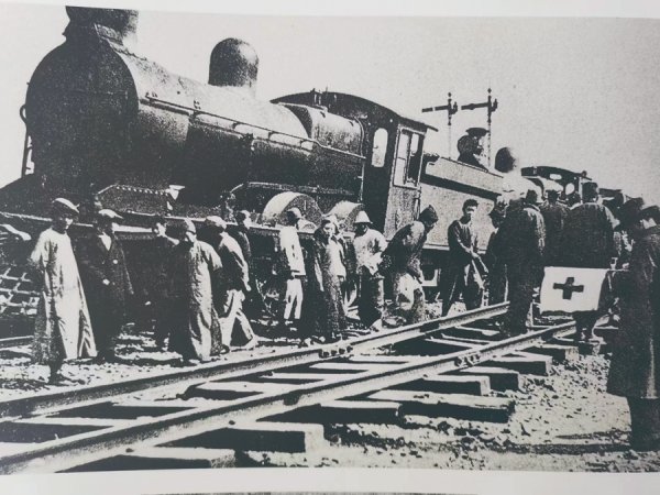 沿著鐵路救治傷員的救護(hù)隊(duì)。