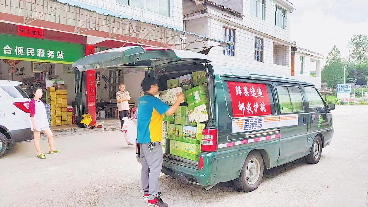 鮮桃裝好箱后,由郵政攬投員裝車運送至最近的收寄點?!踉S經緯 攝