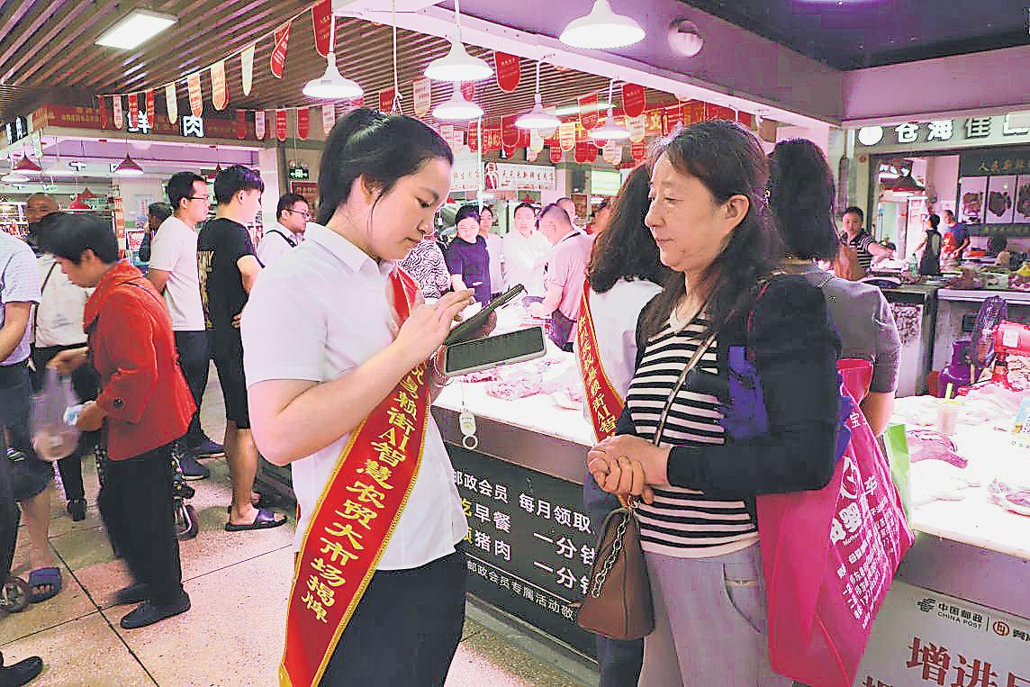 易賴街農(nóng)貿(mào)市場的蝶變,始于石鼓區(qū)分公司的精準(zhǔn)走訪?!拔覀兺ㄟ^對傳統(tǒng)農(nóng)貿(mào)市場的走訪發(fā)現(xiàn),這些傳統(tǒng)農(nóng)貿(mào)市場普遍存在溯源難、管理粗放等問題,于是,我們實(shí)行‘科技賦能+金融嵌入’雙輪驅(qū)動(dòng),出臺(tái)‘智慧市場+金融生態(tài)’的解決方案?!笔膮^(qū)分公司AI智慧菜市場項(xiàng)目成員肖陽說。項(xiàng)目啟動(dòng)初期,該分公司成立了專項(xiàng)工作小組,聯(lián)動(dòng)衡陽市分公司金融業(yè)務(wù)部、湘郵科技和服務(wù)商等組建攻堅(jiān)團(tuán)隊(duì),主動(dòng)對接衡陽市商務(wù)局、市場監(jiān)督管理局及市場運(yùn)營方,從食品安全溯源、經(jīng)營效率提升、消費(fèi)者權(quán)益保障三個(gè)維度制定方案,最終以郵政投入智慧系統(tǒng)與設(shè)備的方式,促成深度合作。在運(yùn)營服務(wù)中,衡陽市分公司運(yùn)用“數(shù)字網(wǎng)格靶向法”,以易賴街市場為中心劃定5公里服務(wù)圈,制定“每日兩次走訪、每日新增3戶商戶”的攻堅(jiān)計(jì)劃,將市場內(nèi)干貨、熟食、水產(chǎn)等8大品類商戶通過分戶管戶至專屬團(tuán)隊(duì),實(shí)行“誰開發(fā)誰維護(hù)”的臺(tái)賬式管理。同時(shí)推出“四季暖心計(jì)劃”,夏季為商戶送冰鎮(zhèn)涼茶、冬季送驅(qū)寒姜茶,全年提供零鈔兌換、資金結(jié)算咨詢等服務(wù),對高頻交易商戶開通“綠色通道”,15分鐘內(nèi)解決問題。