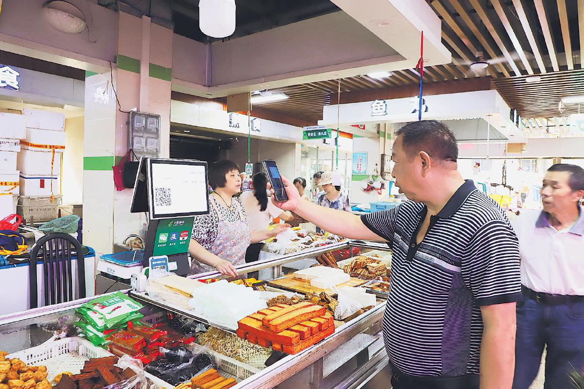 居民在易賴街AI智慧農(nóng)貿(mào)市場用手機(jī)支付。□李無我 郭育琳 攝