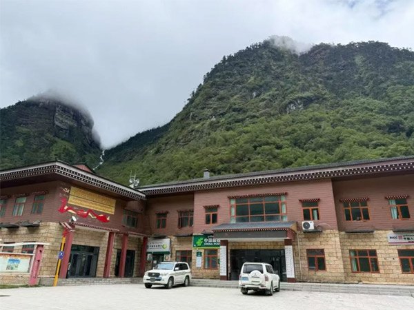 在“玉麥鄉(xiāng)”標(biāo)牌下,采訪組迎來了玉麥鄉(xiāng)郵政代辦所營業(yè)員索朗卓嘎,和她一起走進(jìn)綠意盎然的村落,清澈的河水穿村而過,經(jīng)幡在頭頂隨風(fēng)起舞。