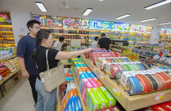 羅斯帝國商城金冠俄貨店里,產(chǎn)自俄羅斯的巧克力、餅干、糖果、香腸、果凍、蜂蜜、酒水等產(chǎn)品琳瑯滿目,前來零購、進(jìn)貨、選品的客戶絡(luò)繹不絕。