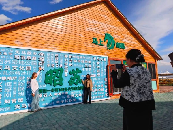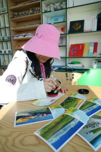 廣東省梅州市游客李女士說:“‘馬上’郵局很有特色,還有一個網(wǎng)紅墻可以拍照,隨意凹造型。平時我也會去景點購買明信片、冰箱貼當(dāng)做伴手禮,我要把我手里的明信片郵寄給朋友。”