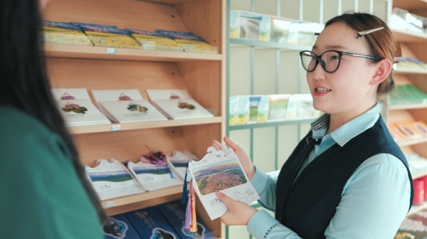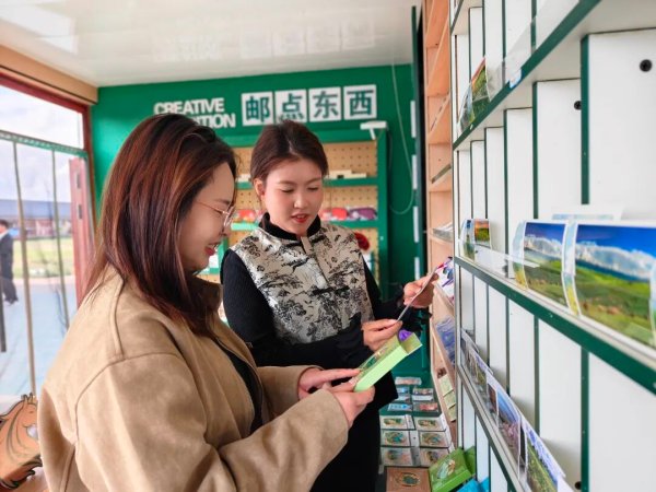 “馬上”郵局營業(yè)員彩紅說:“我手里的這款明信片是異形明信片,明信片上是伊犁風(fēng)光,有天馬的元素,還有流蘇,很有設(shè)計感。我們還開發(fā)了以伊犁景點為主題的流沙冰箱貼,其中這款紫色的薰衣草冰箱貼是我們這里的爆款。”