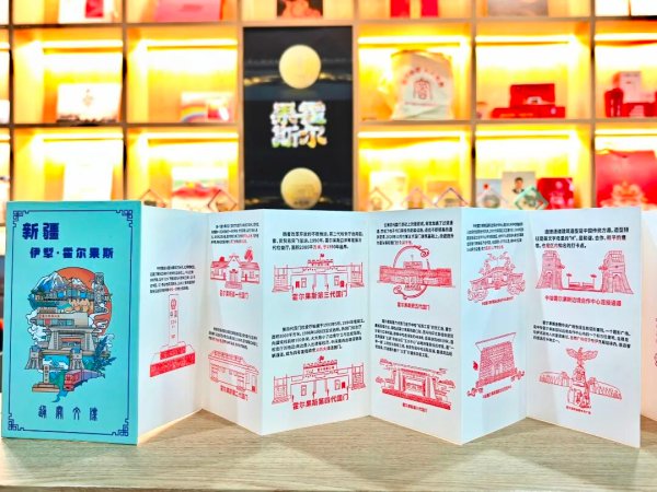 走進郵局,仿佛打開了一個濃縮了霍爾果斯風情的“珍寶匣”。國門造型的冰箱貼、印有界碑圖案的明信片、匯聚當地風光的手繪地圖……每一件文創(chuàng)都凝聚著巧思,讓游客愛不釋手。