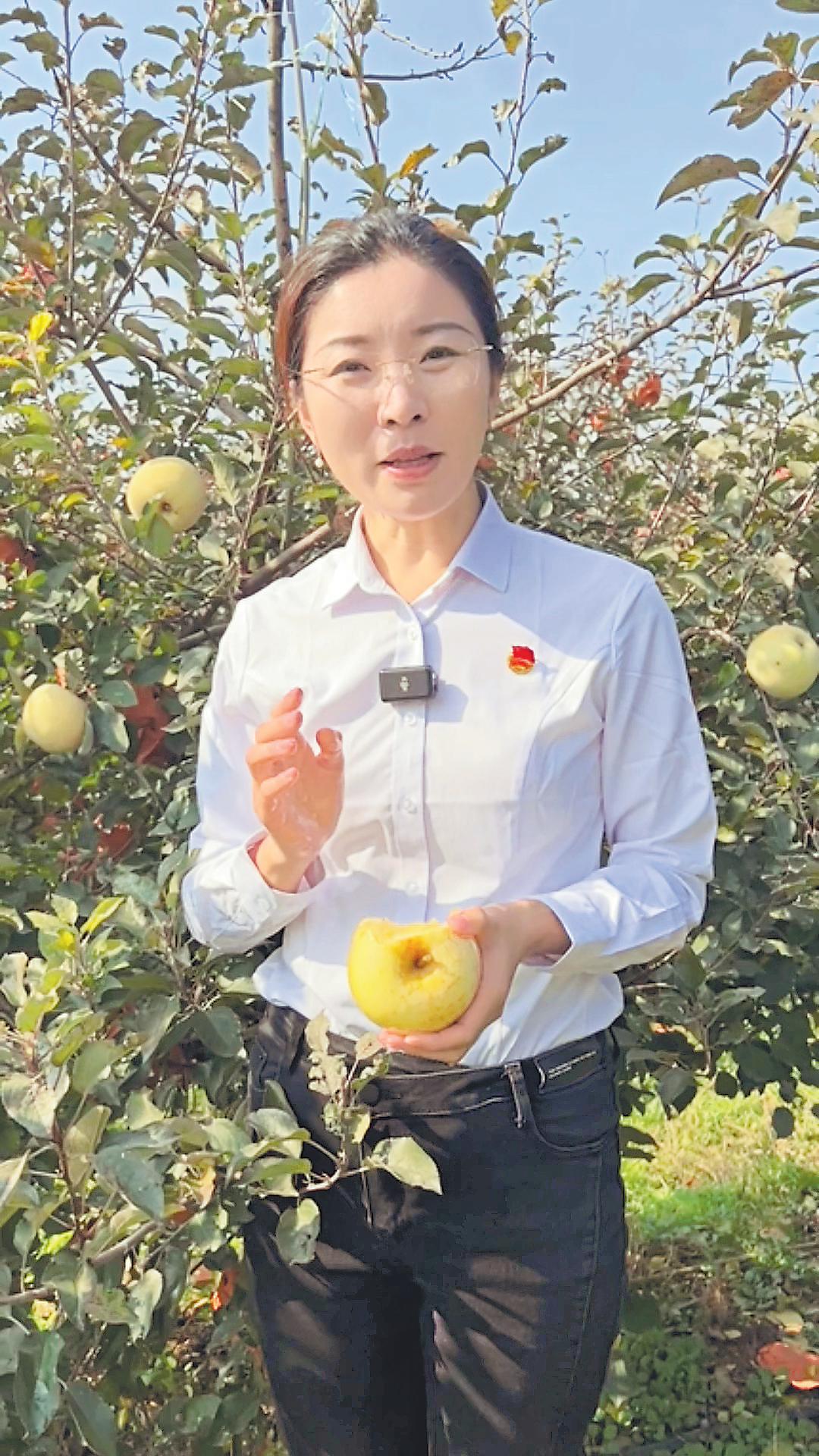 周潔在直播間推介煙臺(tái)蘋(píng)果。