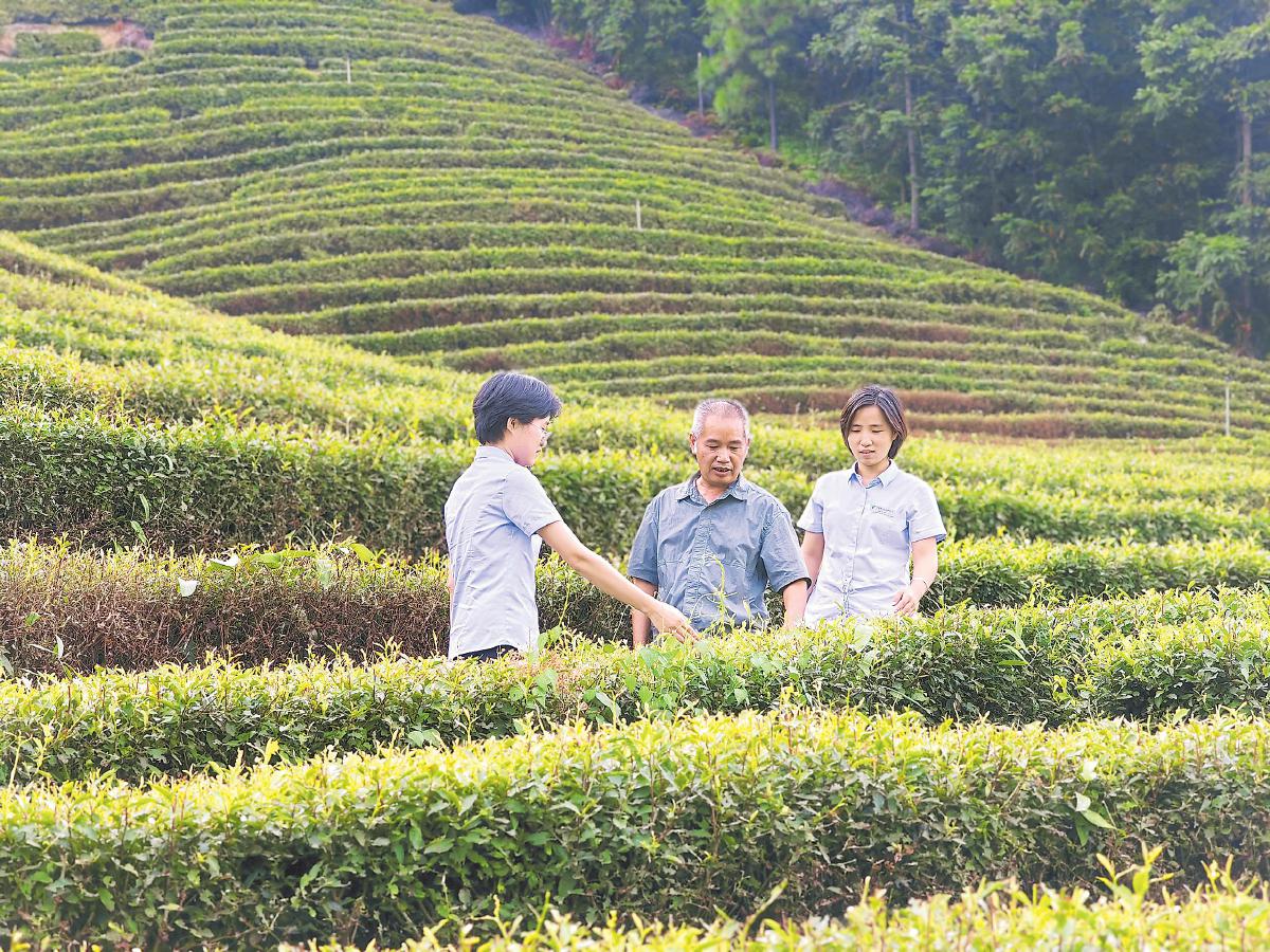 遂川縣支行客戶經(jīng)理走訪茶農(nóng)。