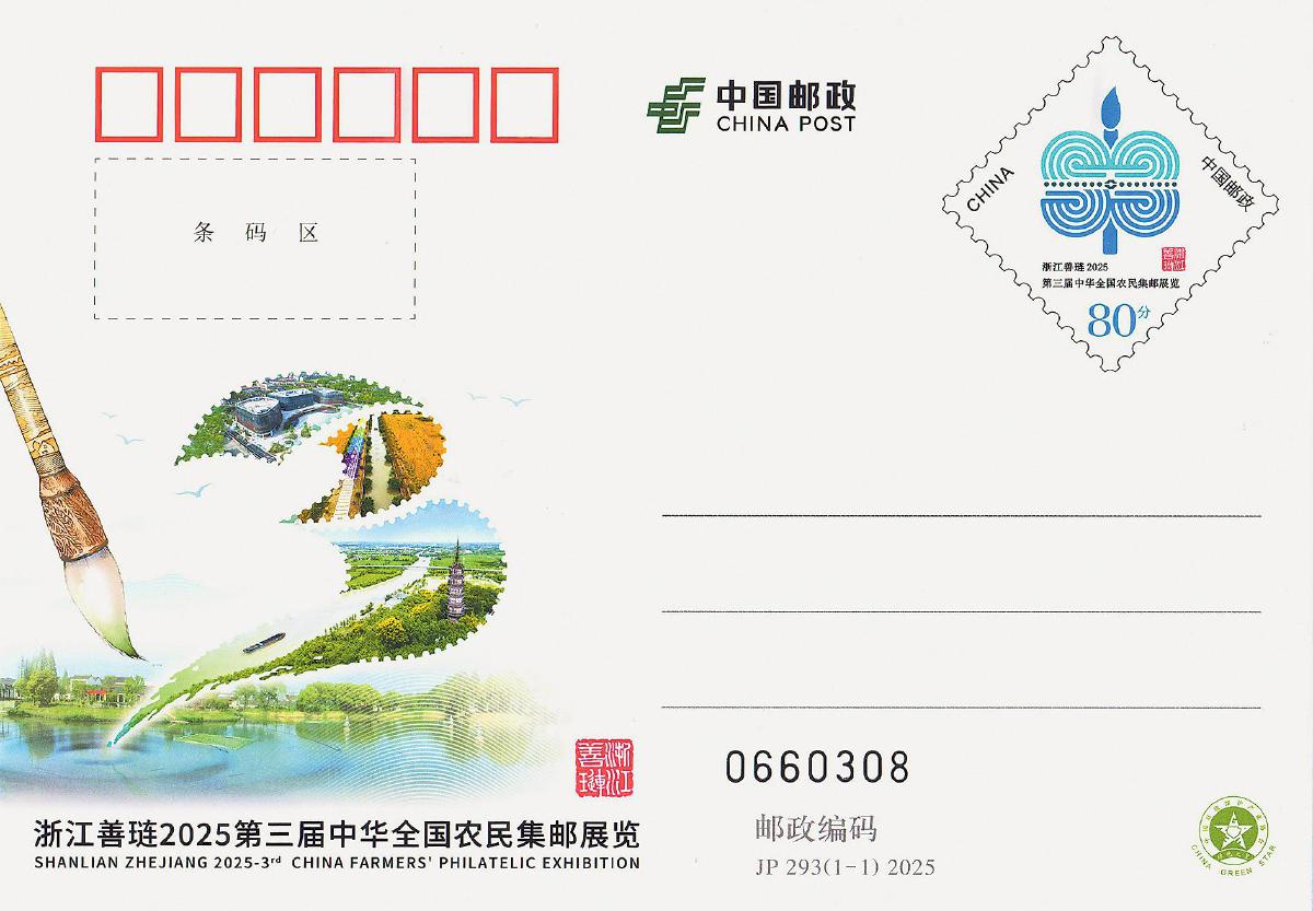 展覽集中展示全國28個(gè)省級郵協(xié)精選的146部、450框“三農(nóng)”題材郵集,涵蓋傳統(tǒng)、郵政歷史、專題等10個(gè)競賽類別,特別增設(shè)19部、30框書信集郵非競賽單元。中國郵政為本次郵展特別發(fā)行《浙江善璉2025第三屆中華全國農(nóng)民集郵展覽》紀(jì)念郵資明信片1枚。