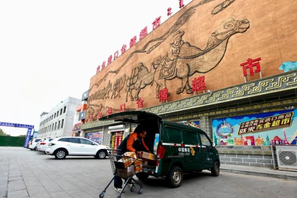 在二連浩特市的垚金進(jìn)口倉(cāng)儲(chǔ)超市里,攬收員廖海雨一天兩次來(lái)攬收郵件,使游客們買到的商品能夠當(dāng)天發(fā)出直發(fā)回家。