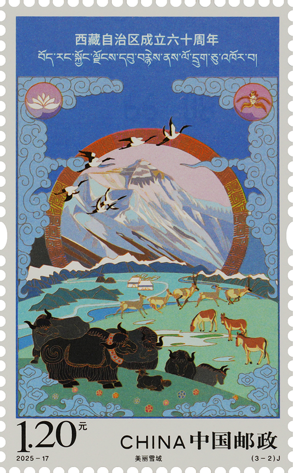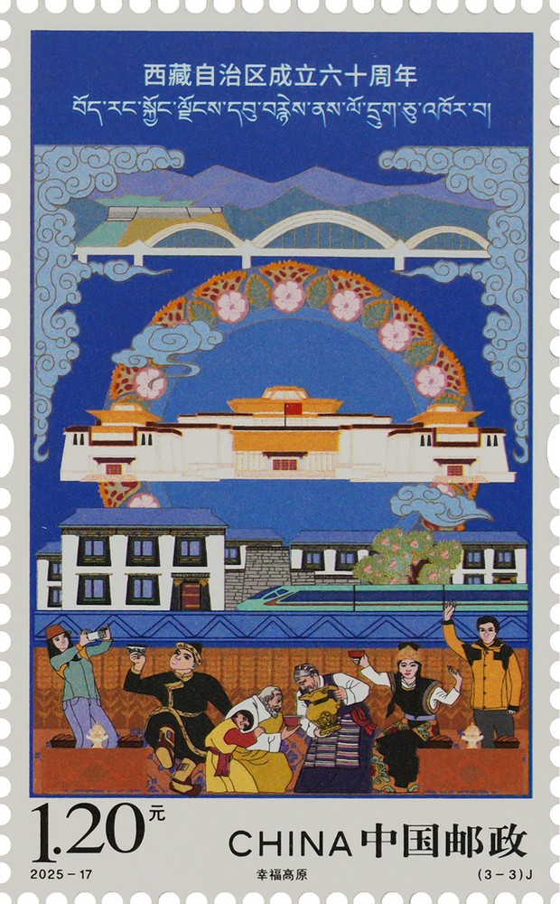 中國郵政定于2025年8月15日發(fā)行《西藏自治區(qū)成立六十周年》紀念郵票1套3枚。詳情如下: